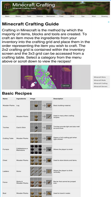 complete guide to crafting in minecraft. includes basic items, blocks, tools, weapons, mechanism, food, wool & more.