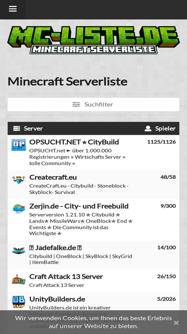 Finde die besten Minecraft Server. Durchsuche unsere Serverliste, finde deinen Lieblingsserver und vote für deinen Favoriten!