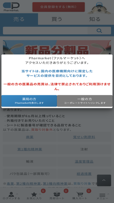 pharmarket(ファルマーケット)は、調剤薬局様の『不動在庫』を、シート単位で買い取りし、販売している医療機関限定の会員制サイトです。全国6,000店舗の調剤薬局様にご登録いただいております。(登録無料)