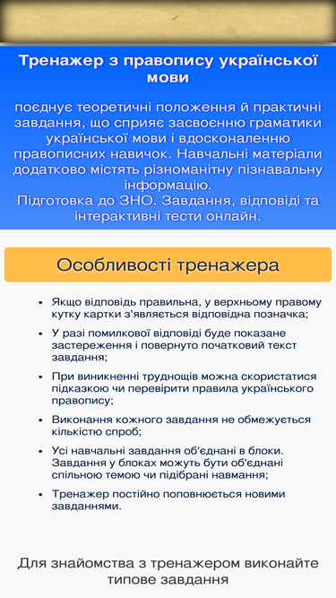 98%завдання, відповіді та тести онлайн з правопису та граматики української мови. цікаві і пізнавальні вправи онлайн. підготовка до зно з укр мови без репетитора чи гдз. on-line тренажер - пізнавайте, вчіться, розвивайтесь.