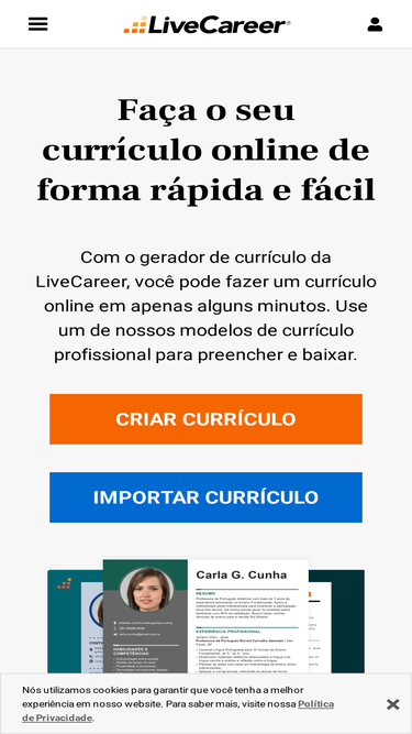 Saiba mais sobre os termos de uso da LiveCareer.
