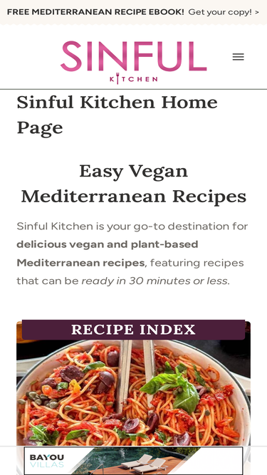 Sinful Kitchen makes easy vegan Mediterranean recipes in 30 minutes or less. Mediterranean recipes tend to be naturally plant-based and vegan!