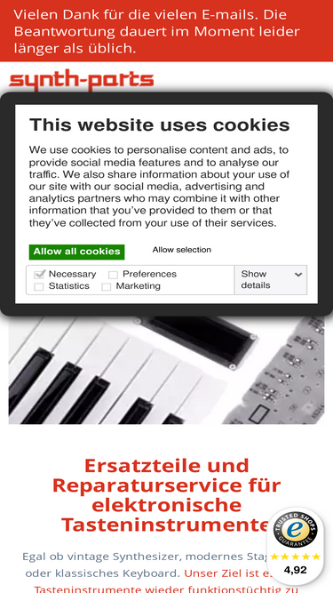 Synth-parts Online-Shop bietet Ersatzteile u. Reparaturen für Tasteninstrumente | Komplett-Service für elektronische Instrumente.