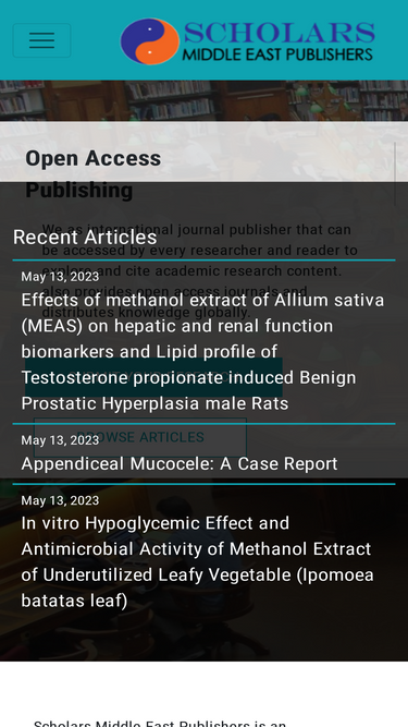 Scholars Middle East Publishers is an international publisher for open access scientific journals in both online and printed versions from Dubai, UAE. Its aim is to serve for the scholars and researchers all over the world by means of fast publishing and to get widest exposure by providing free access. Scholars Middle East Publishers team works with full dedication to improve the services and to maintain high quality standards.