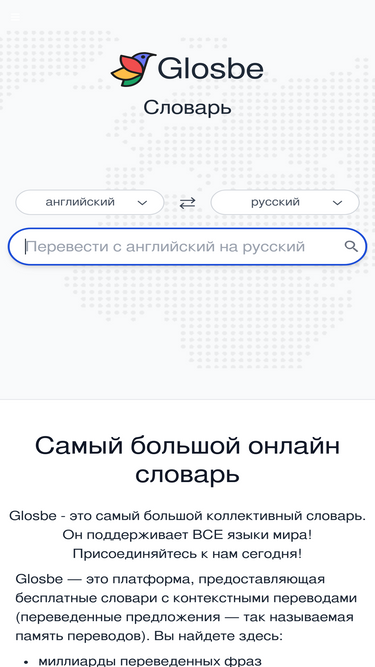 словарь glosbe - одно место для всех языков! переводы, примеры предложений, записи произношения и ссылки на грамматику. попробуйте!