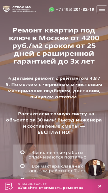 97%ремонт квартир под ключ в москве от 4200 руб./м2 сроком от 25 дней с раширенной гарантией до 3х лет - компания строй mg