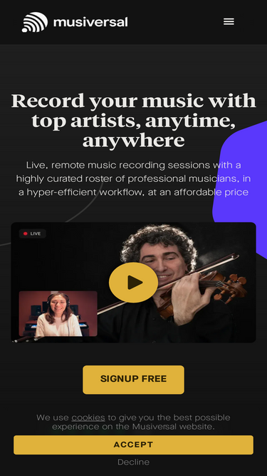 77%Book live remote music sessions with world-class professional musicians. High-quality audio, real-time collaboration, and unforgettable musical experiences.