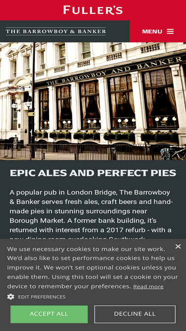 Give us a call, drop us an email, or simply pop in to book a table or party at The Barrowboy & Banker