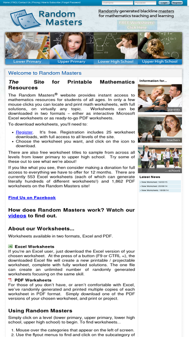 the random masters website provides instant access to mathematics resources for students of all ages. in only a few mouse clicks you can locate and print math worksheets, with full solutions, on virtually any topic. worksheets can be downloaded in two formats – either as interactive microsoft excel worksheets or as ready-to-go pdf worksheets.
