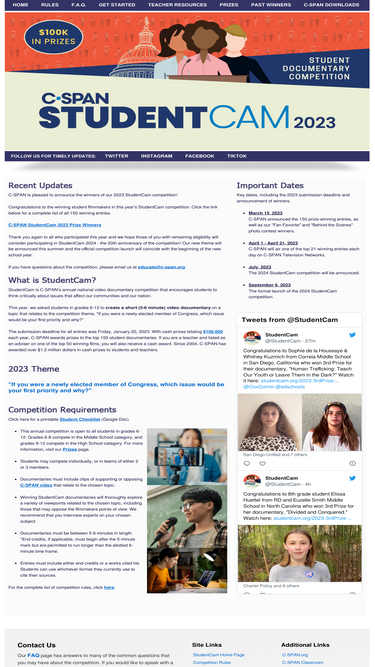 82%studentcam is c-span's annual national video documentary competition that encourages students to think critically about issues that affect our communities and our nation.