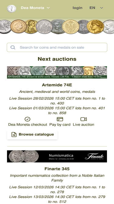 numismatic auctions organized by professionals. you will find roman coins, greek coins, medieval coins and world coins and medals.