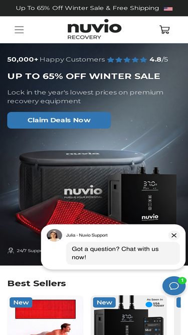 Experience affordable, convenient cold therapy with Nuvio's Recovery Chiller—turn any tub into a 39°F ice bath for optimal muscle recovery & reduced inflammation.