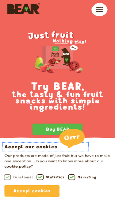 in the mood for fruit? try bear, the tasty & fun fruit snack with simple ingredients! we are made with real fruits! the healthy and fun choice to enjoy at home, on the go or to surprise your kids.