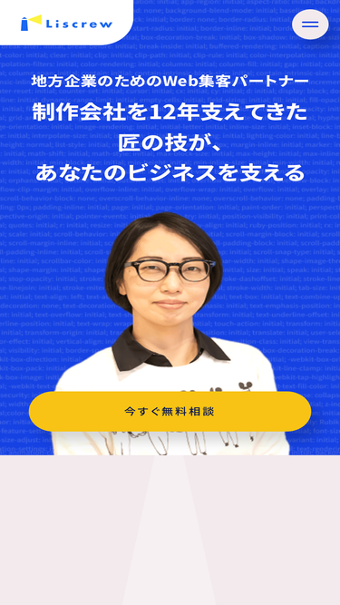 大阪を拠点にしているWeb制作会社:Liscrew(ライスクリュー)の代表、井川淑恵が、地方企業のためのWeb集客パートナーとしてあなたのビジネスをサポートします。無料相談を実施しているので、お気軽にご相談ください。