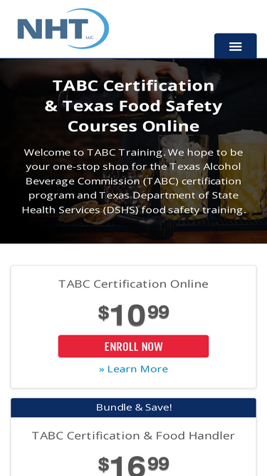we offer tabc certification & texas food handler and manager certification online. tabc approved alcohol course and tdshs approved food course and test online.