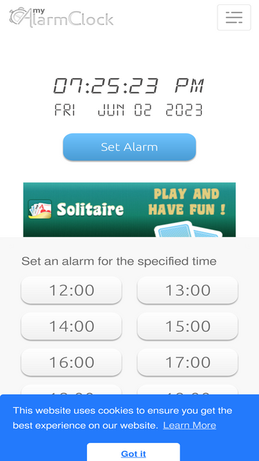 Free Online Alarm Clock designed to wake you up or organize your time. Just set the hour and minutes you want and you're ready to go. Set the alarm now!
