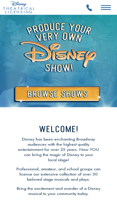 Bring the excitement and wonder of a Disney musical to your community today. Professional, amateur, and school groups can license our extensive collection of over 30 beloved stage musicals and plays.