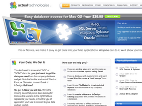 88%we develop affordable, easy to use odbc drivers for mac os, connecting excel and filemaker to microsoft sql server, oracle, access, sybase, mysql and postgresql.