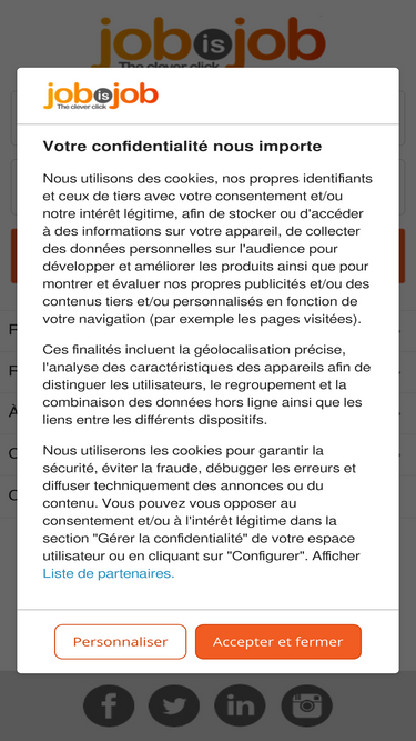 JobisJob réunit des milliers d'offres d'emploi des plus grands moteurs de recherche spécialisés,tout est sur JobisJob.Trouvez toutes les offres d'emploi à Paris, Lyon, Marseille, Bordeaux, Lille, Toulouse, Montpellier et sur la France entière.Offres d'emploi en France,Emplois en France.