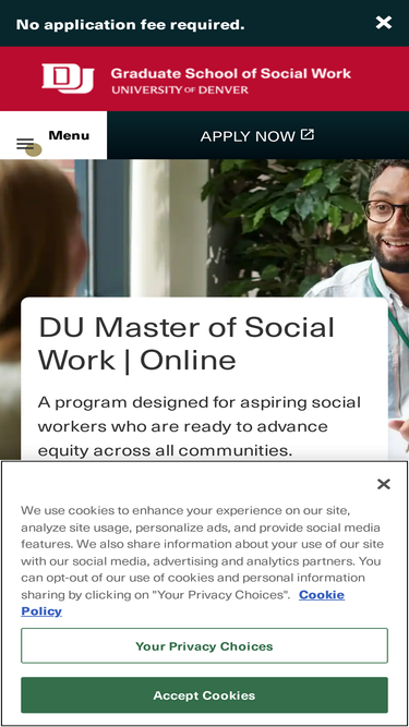 75%In addition to your Masters in Social Work, earn a concentration in Mental Health and Trauma from the University of Denver.