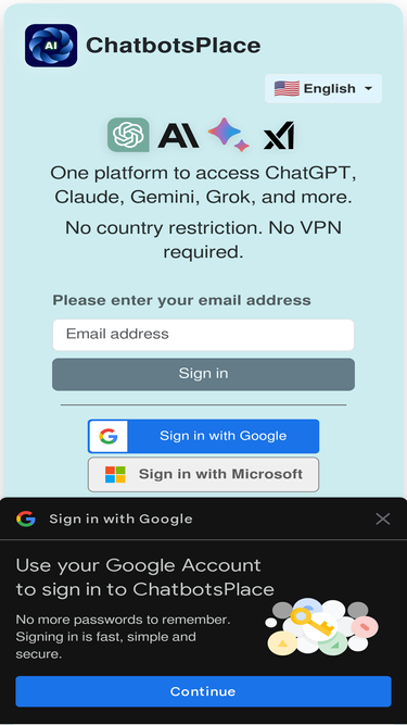 93%Access ChatGPT, Claude, Gemini, and Grok. All in One Place. Access ChatGPT without VPN. Use Claude from China. Get Gemini in China.