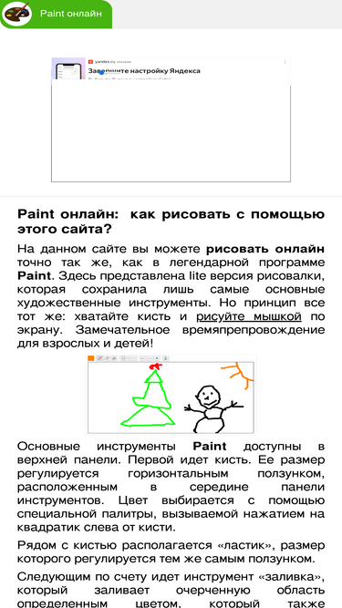 на этой странице вы можете бесплатно порисовать в виртуальном paint. доступны все цвета радуги, кисть, ластик, заливка, кнопка отмены. готовый рисунок можно сохранить на компьютер. пользоваться сервисом можно без регистрации.