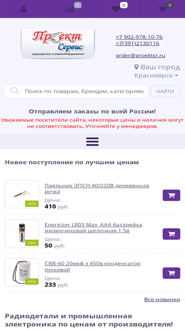 Проект сервис интернет-магазин радиодеталей и радиооборудования ☎ +7-902-978-10-76 Доставка по Красноярску и почтой по всей России, пункты самовывоза