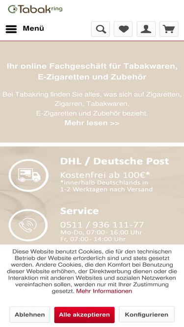 Unser Online-Shop führt neben Tabakwaren auch Zigarren, Zigarillos, E-Zigaretten und jede Menge Raucherzubehör. Jetzt bestellen!