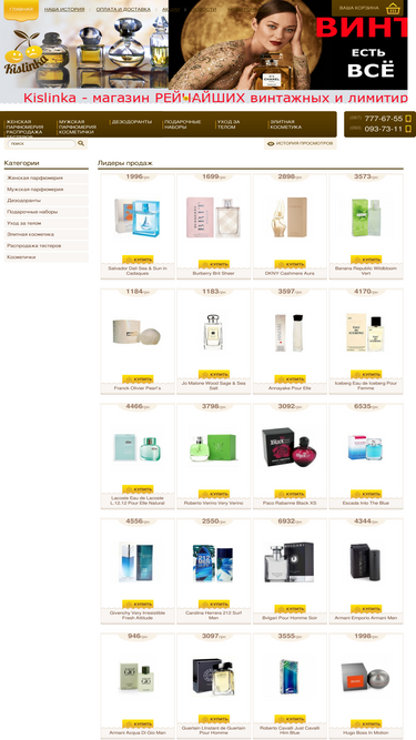 91%интернет магазин женской и мужской парфюмерии kislinka огромный выбор духов, косметики и средств ухода за телом по низким ценам. доставка по всей украине.