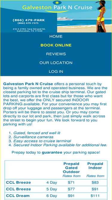ez cruise parking serves all cruise-goers leaving from galveston & offers 24-hour security to ensure your car is safe while you enjoy your cruise. reserve online today!