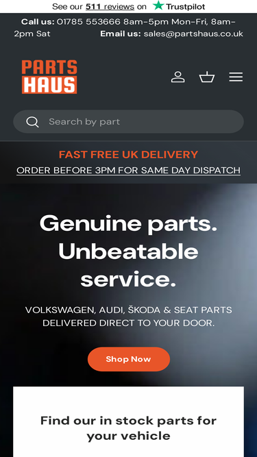 Partshaus began life in 2016 supplying only brand new, genuine parts & accessories for Volkswagen, Audi, Skoda & SEAT. Today it's an established business with a small team, who are proud of the service they provide and are passionate about all things VAG. We'll get right to the point of why you should choose us