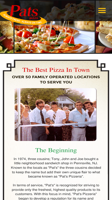 Learn more about Pat's Pizzeria, where we serve delicious pizza, wings, crab cakes, and cheesesteaks with a passion for quality and flavor. Discover our story and commitment to providing the best pizzeria experience for our community.