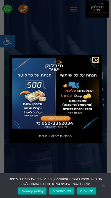 59%תידלוק ישירתידלוק ישיר מתמחה באספקת דלק לתחבורה והסקה, מעל 30 שנות ניסיוןתידלוק ישיראספקה בכל כמות ולכל מטרהתידלוק ישיראספקה בכל כמות ולכל מטרה תידלוק ישיראספקה בכל כמות ולכל מטרה אנחנו עובדים גם כשאתם ישנים, מענה טלפוני 24 שעות, אספקה וחלוקה סביב השעון 03-549-8485 tidluk5498485@gmail.com תידלוק ישיר מתמחה באספקת דלק לתחבורה והסקה, עם ניסיון מצטבר משנת 1967מובילה את שוק […]