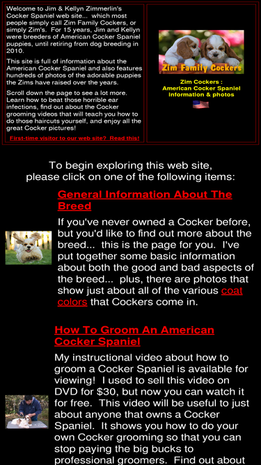 american cocker spaniel web site featuring lots of pictures, information, helpful tips, and a large facebook group of cocker lovers