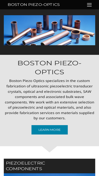 73%boston piezo optics specializes in the custom fabrication of ultrasonic piezoelectric transducer crystals, optical and electronic substrates, saw components and associated bulk wave components. we work with an extensive selection of piezoelectric and optical materials, and also provide fabrication services on materials supplied by our customers.