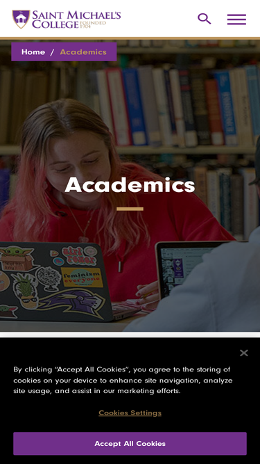 71%saint michael's college is a liberal arts, fully residential college located just outside burlington, vermont - a beautiful college town.