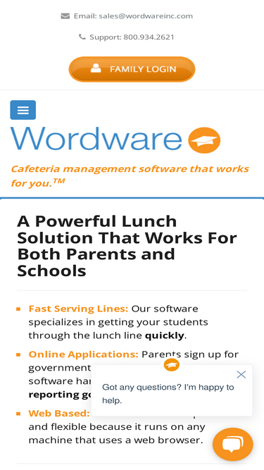 Wordware leading cafeteria management software solution provider to schools for fast serving lines, free and reduced lunch, nutrition management, automated meal payments, online lunch balance, cloud-based POS, online Family account access, PCI-compliant.