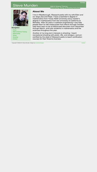100%steve munden's homepage, with information on tutoring in mathematics and the sciences, and instruction in skiing, shooting, and motorcycling