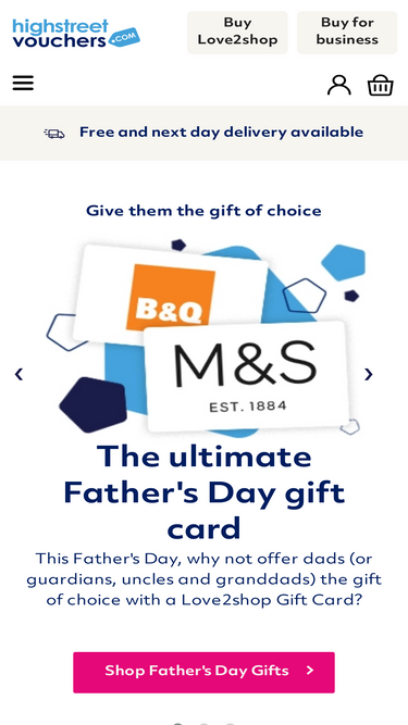 gift vouchers & gift cards for 100s of brands including love2shop, john lewis and m&s. available with next day delivery and a free personalised card