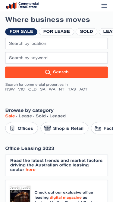browse commercial real estate for sale and for lease on australia’s no.1 commercial property site. find the latest commercial properties & real estate market data.