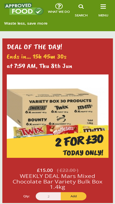 Britain's largest online retailer of clearance low price Food & Drink, with over 12000 products in stock. Shop online now for discounted Groceries, Protein, Beers, Wines & Spirits, Beauty and Household Goods delivered to your door. Cheap food. Huge savings. Top branded products added daily.