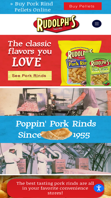 Rudolph's commitment to excellence has been passed from generation to generation. In 1955, John Rudolph learned of an untapped market for pork rinds and the Ohio entrepreneur quickly launched his own company producing pork rinds from smoked bacon rinds.