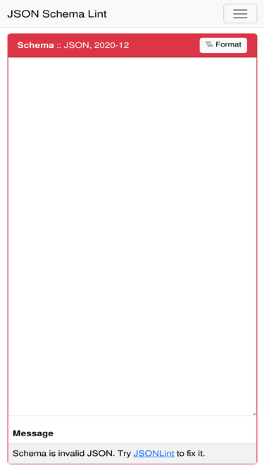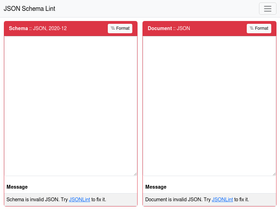 100%json schema lint is a web based schema validator supporting several specification versions and markup languages.