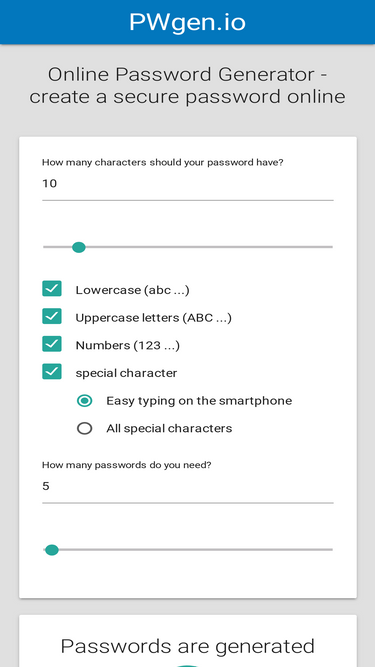 create a secure and easy to remember password online. the password generator provides the guidelines and aids to find a good password.