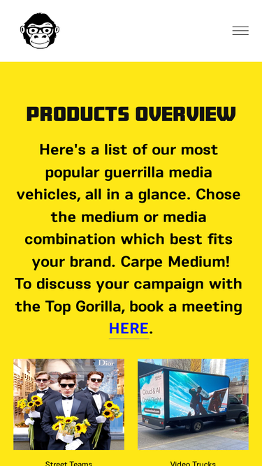 Looking for low cost, measurable marketing results? Find out how GoGORILLA Media can elevate your brand with creative guerilla advertising campaigns.