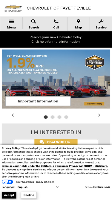 we're your local chevy dealership serving springdale, bentonville, fort smith, and siloam springs drivers with sale, financing, service and parts.
