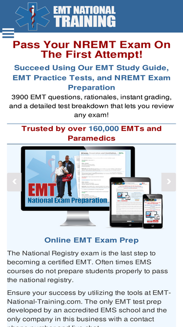 100%emt test preparation online. over 3000 questions for emr, emt, aemt and paramedics. trusted by over 160,000 ems providers to study for the nremt exam. try our nremt simulation exam. 100% pass guarantee.