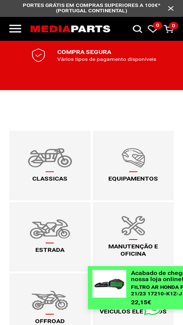 loja, online, e-commerce, Yamaha, Sachs, famel, Honda, casal, Macal, suzuki, Guarda lamas, guiador, filtro óleo , filtro ar, bateria, pneus, pastilha travao, discos