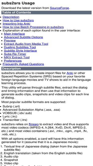 the official documentation of subs2srs.