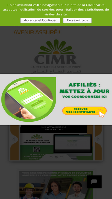 99%Afin de répondre au mieux aux demandes et interrogations des entreprises adhérentes à la CIMR et de leur faciliter l’accès et l’utilisation des différents téléservices, la CIMR a mis en place au niveau de la page d’accueil du site www.cimrpro.ma une rubrique « Foire Aux Questions » dédiée spécialement à ses adhérents.